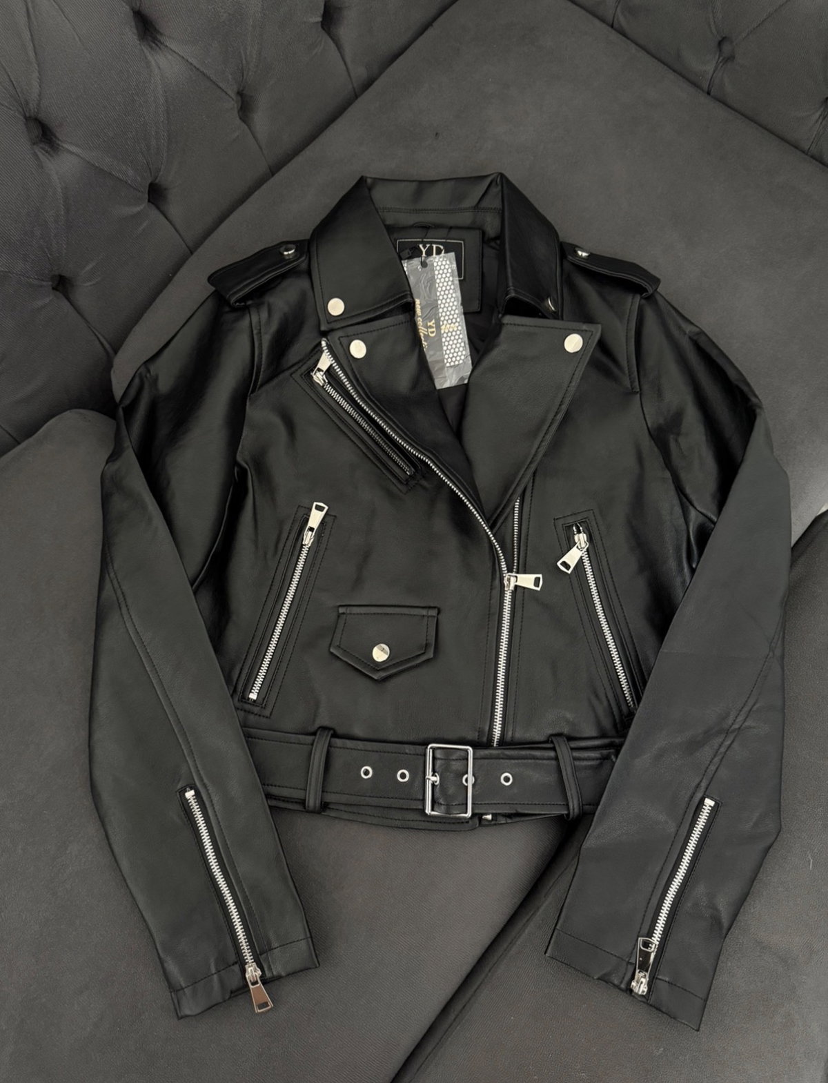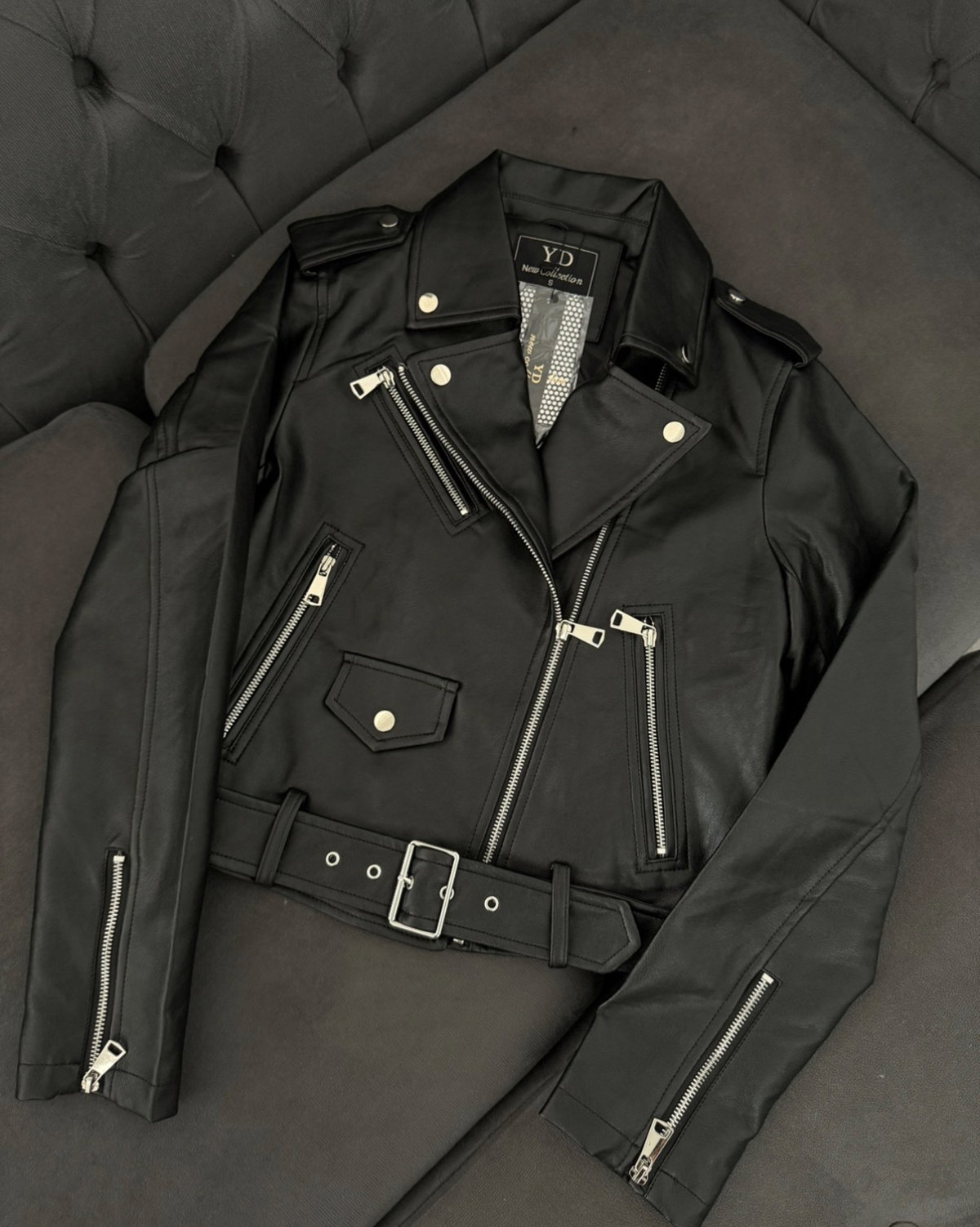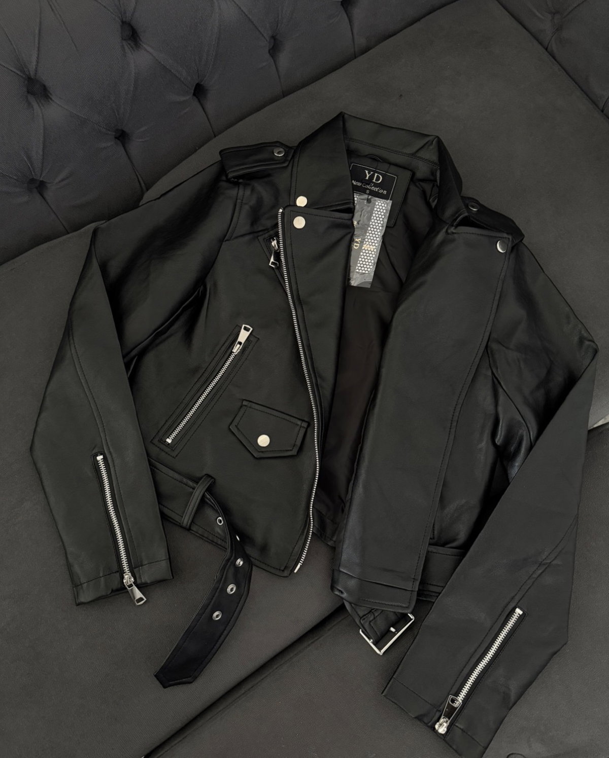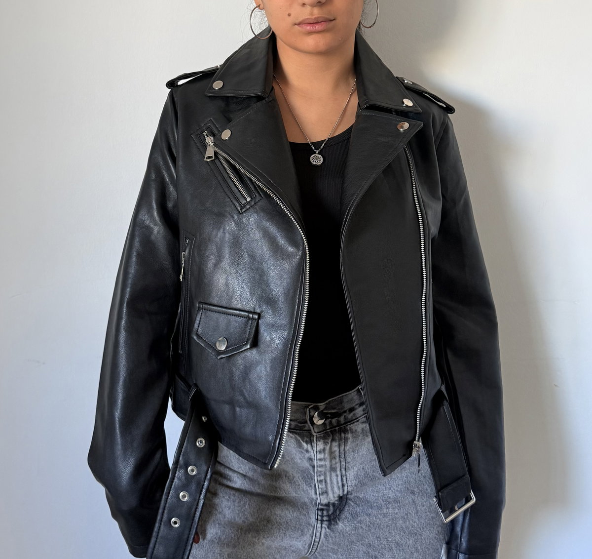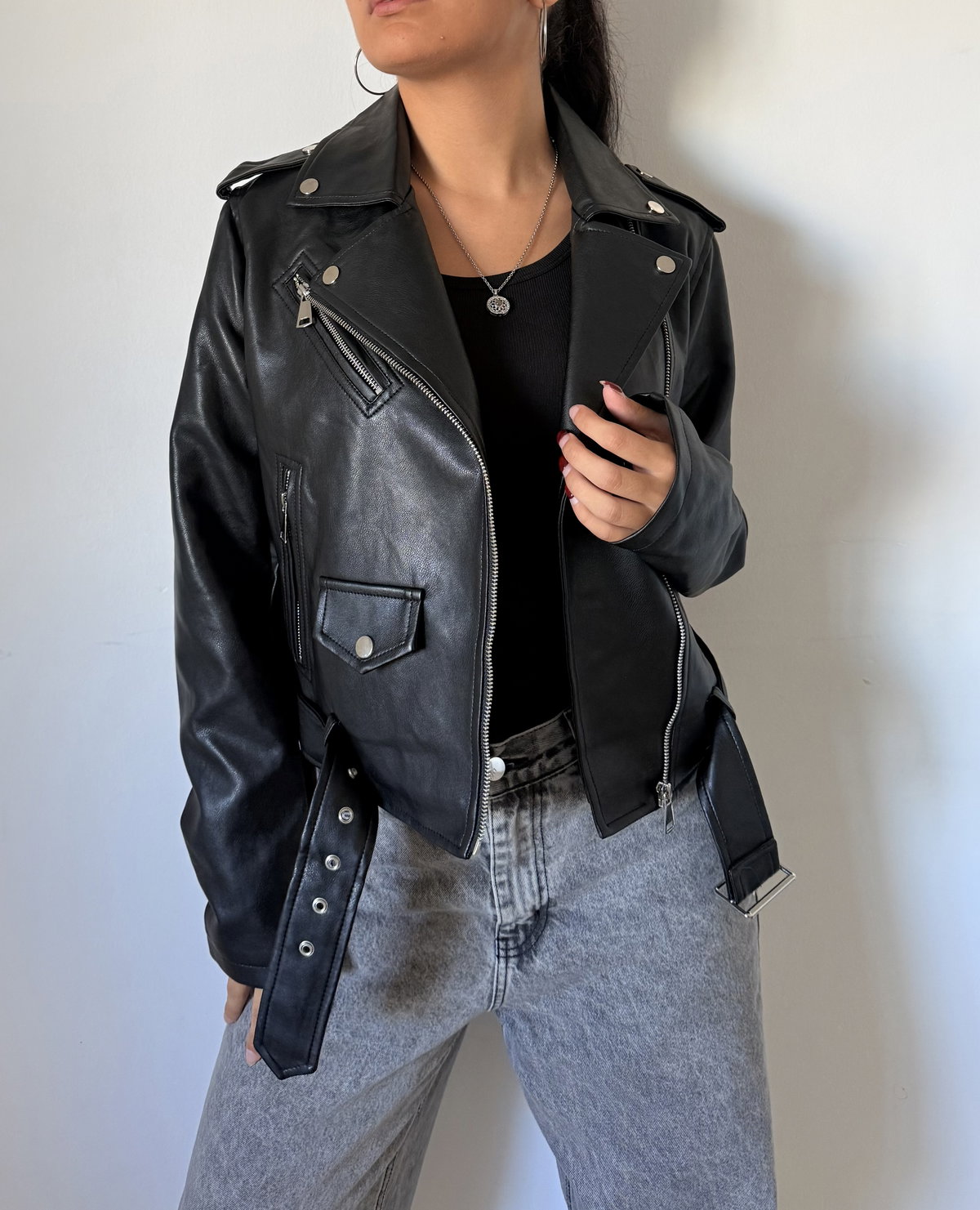 La campera Line de ecocuero es el ítem infaltable para darle un toque rockero y sofisticado a tus looks de noche o para levantar un outfit básico de día ⛓️ Tiene un diseño clásico con solapas, cierres metálicos y cinturón ajustable que te aseguran un calce perfecto y con mucha onda ✨