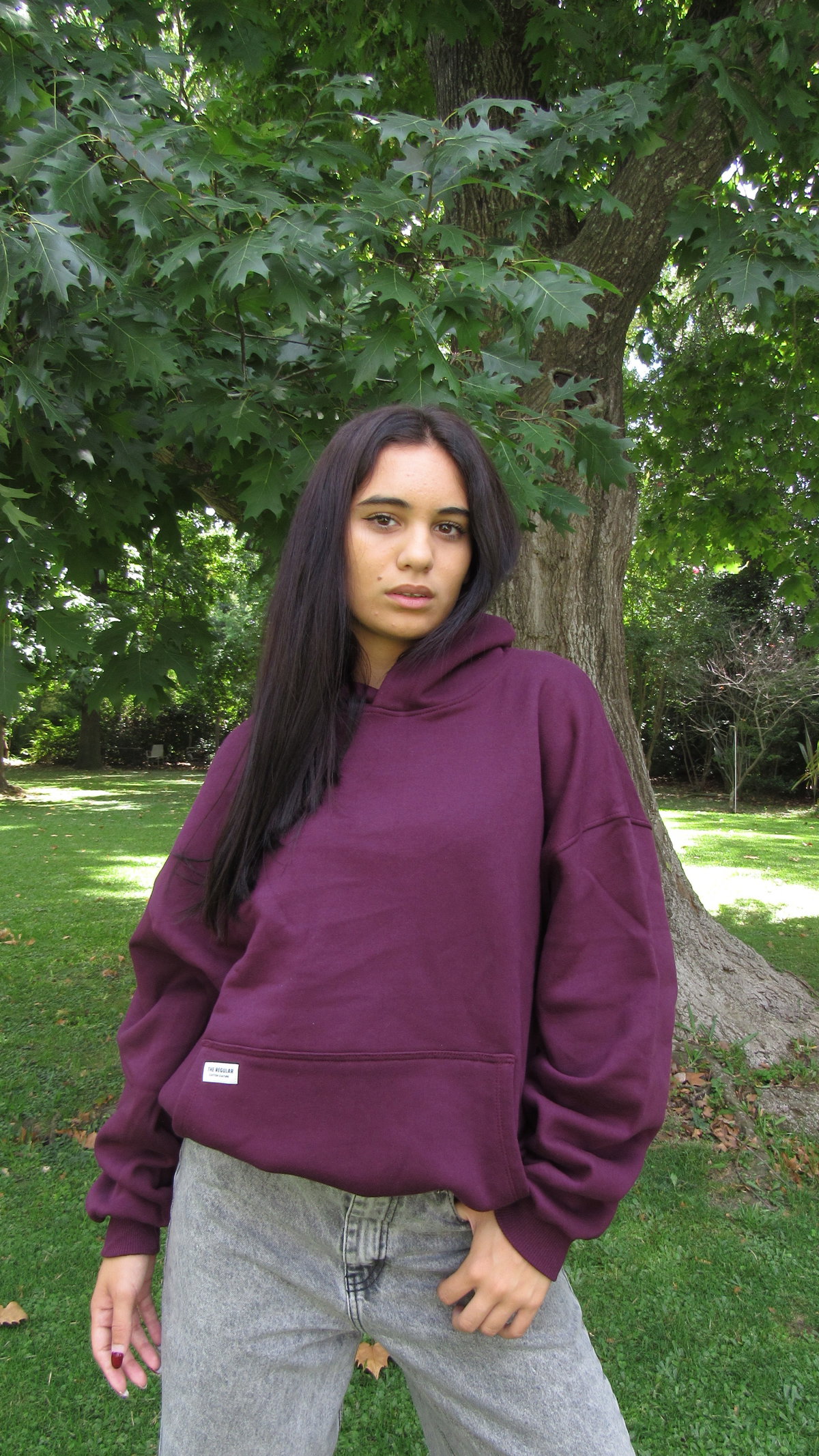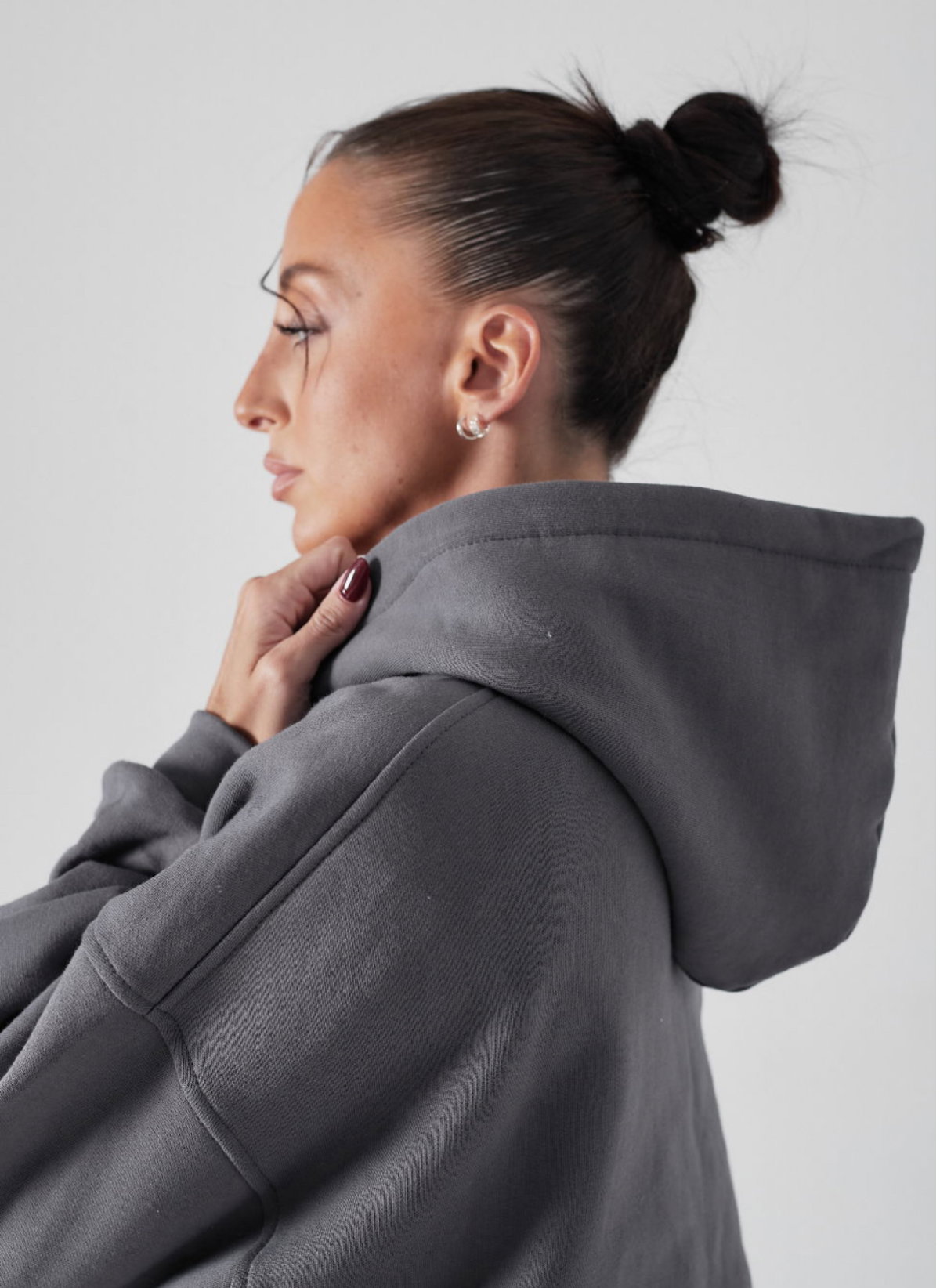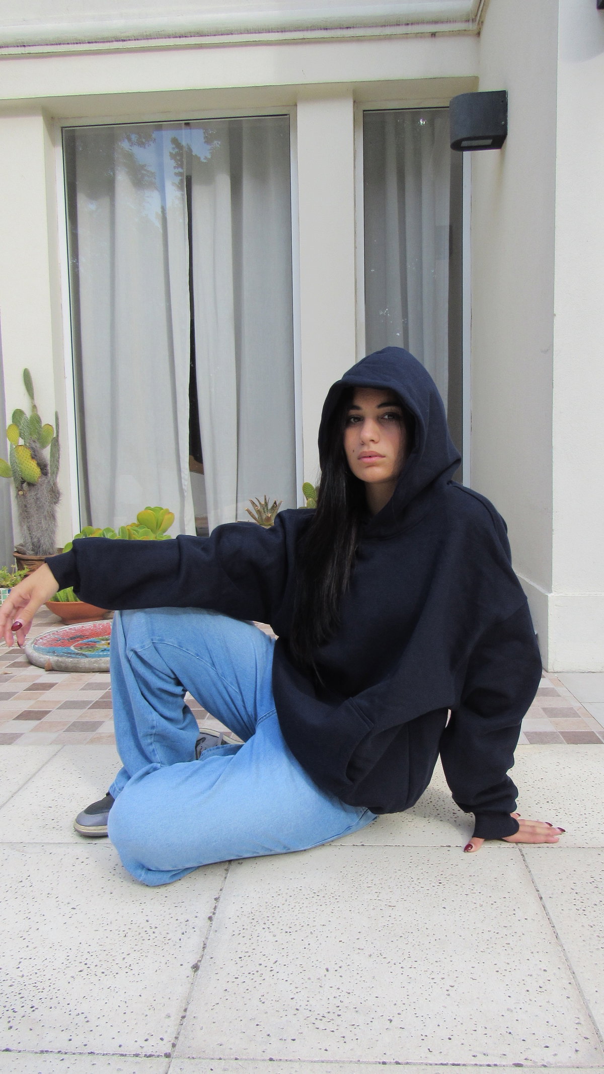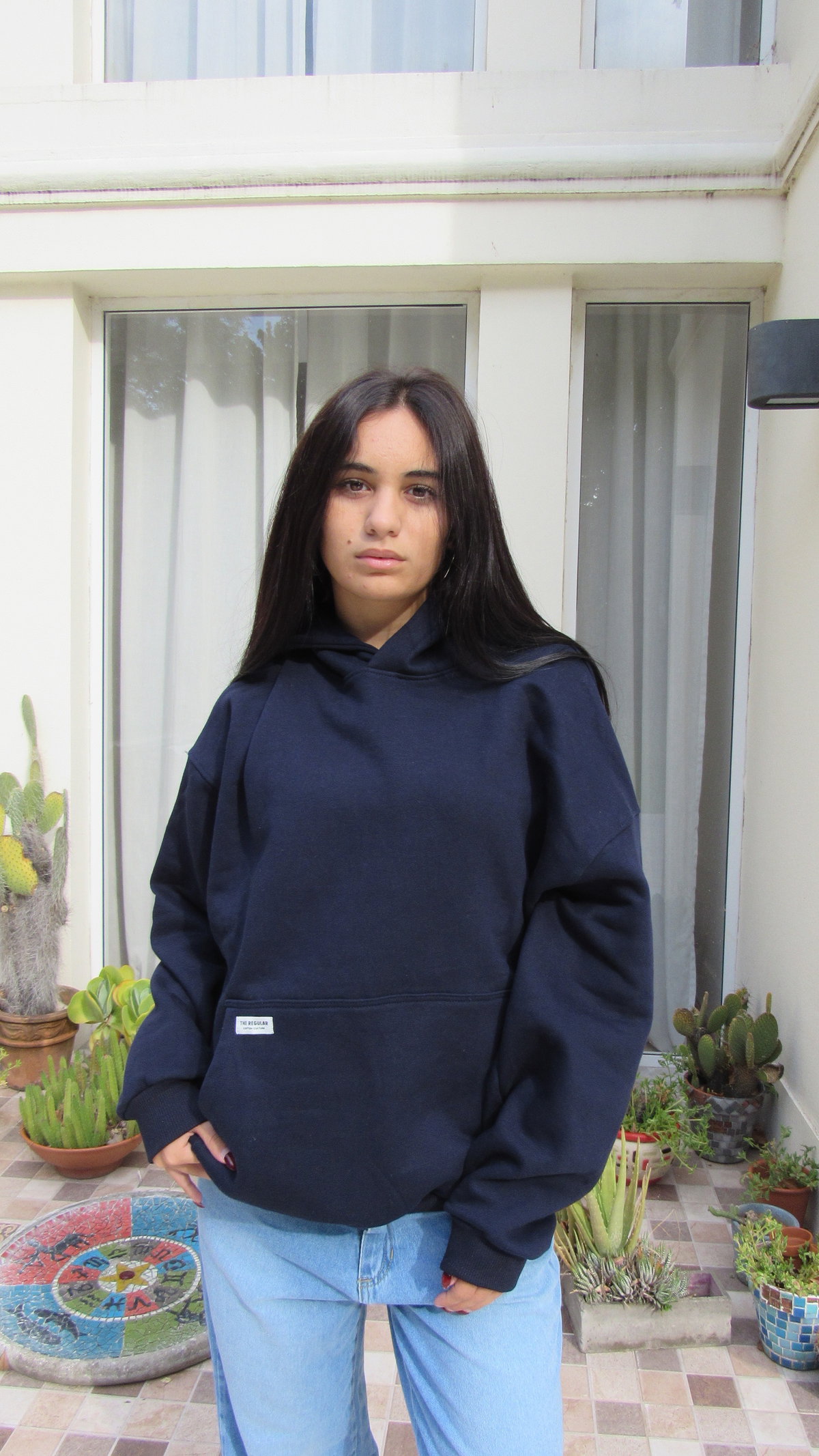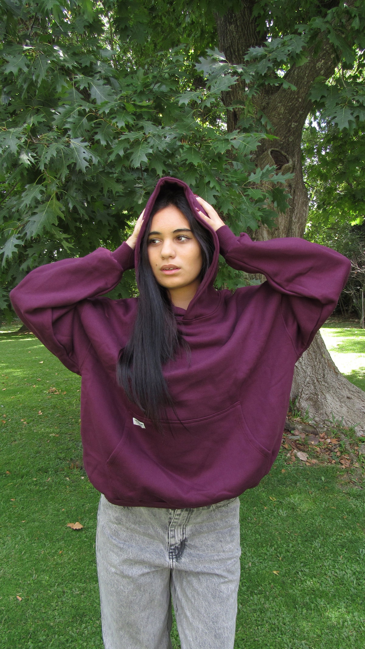 Detalle: Buzo oversize con bolsillo canguro y capucha