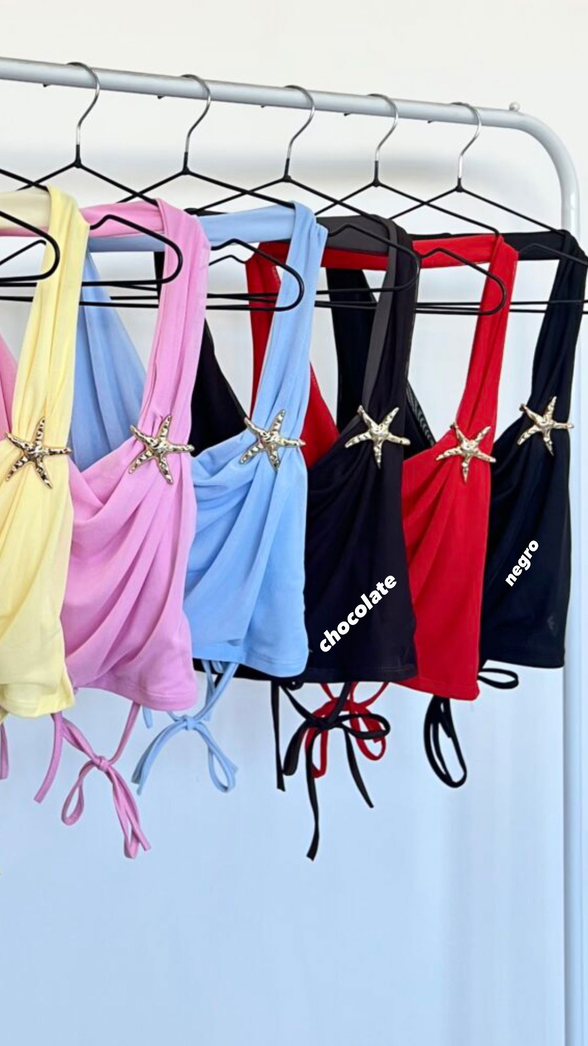 TOP TUL BUCHE HEBILLA ESTRELLA GRANDE CON 2 TIRAS PARA ATAR ESPALDA