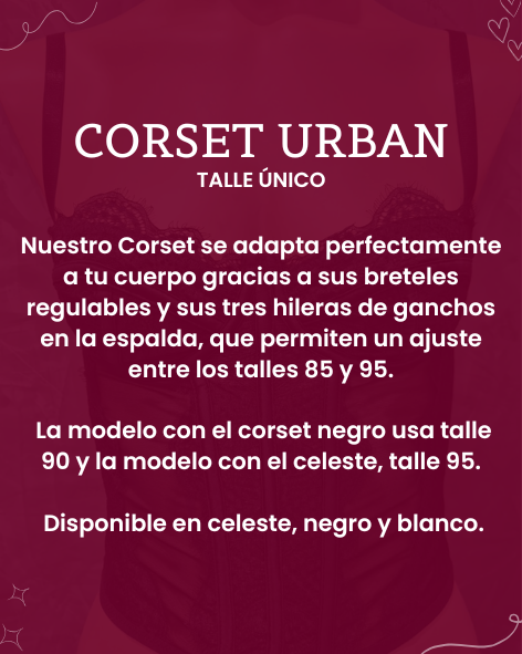 Nuestro Corset Urban se adapta perfectamente a tu cuerpo gracias a sus breteles regulables y sus tres hileras de ganchos en la espalda, que permiten un ajuste entre los talles 85 y 95 💋​